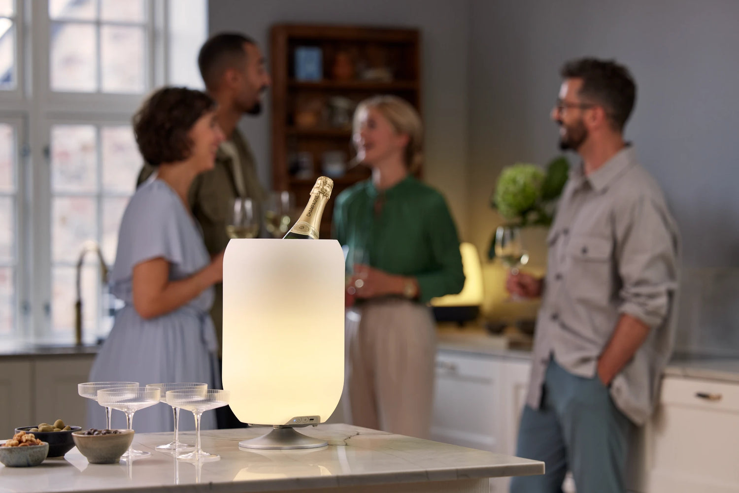Le Kooduu Atmos combine le luxe d'une lampe, la commodité d'un porte-boisson et le plaisir d'un haut-parleur Bluetooth dans un design cylindrique chic. L'Atmos est disponible en 2 versions avec un support en acier ou en laiton. Conçue par le légendaire Jacob Jensen Design Studio au Danemark.