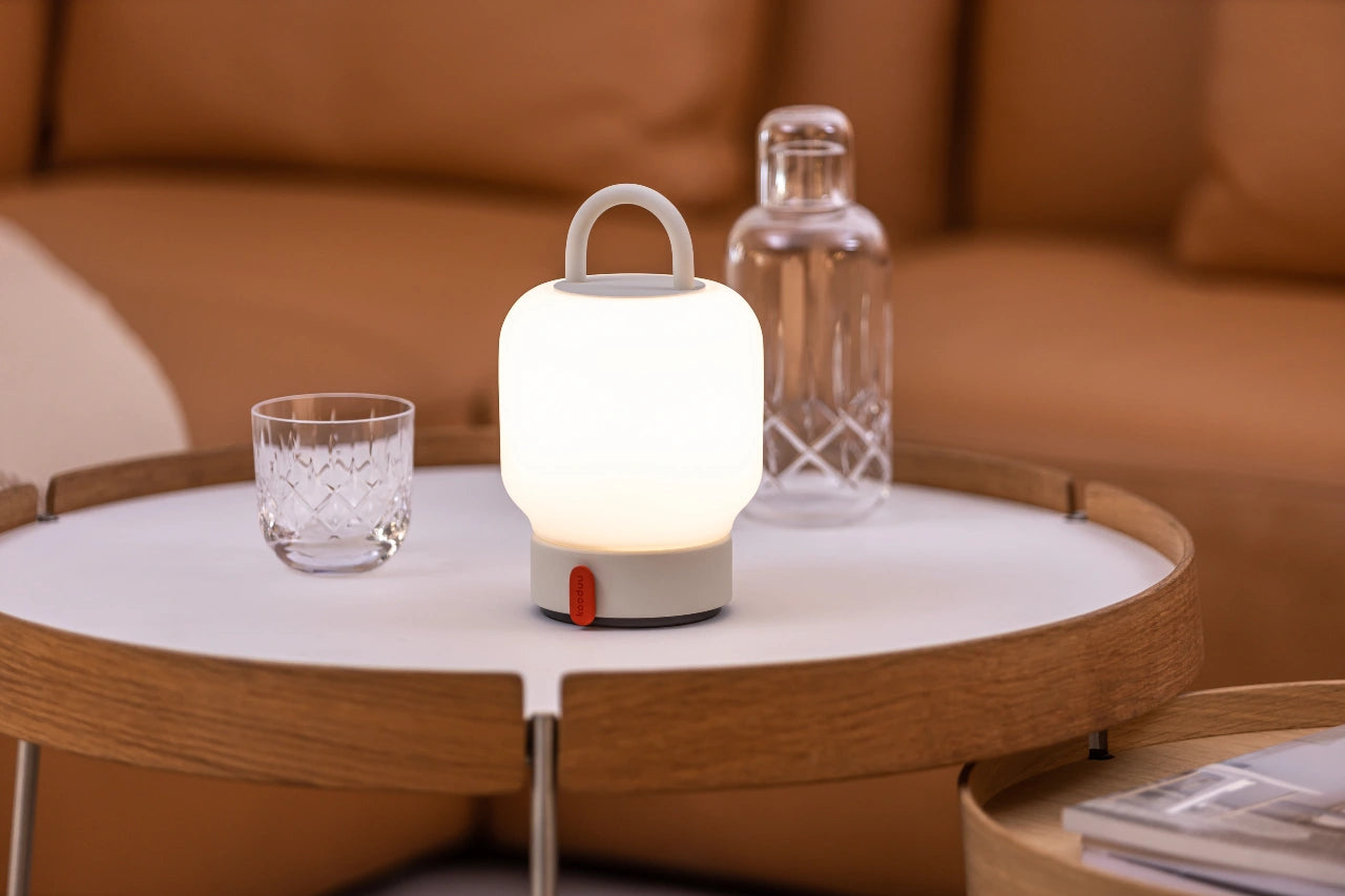 La Kooduu Loome est une lampe de table de type lanterne très portable, à lumière diffuse et réglable. Sa poignée de transport permet de l'emmener partout, à l'intérieur comme à l'extérieur. Grâce à sa station d'accueil USB et à son autonomie de 40 heures, vous n'aurez pas besoin de la recharger régulièrement. Le Loome est disponible en 5 couleurs tendance.