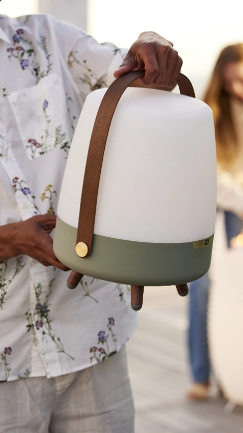 Le Kooduu Lite-up Play - SOUND BY JBL est 100% portable grâce à sa petite taille, sa batterie intégrée et rechargeable, et son manche en bois certifié FSC fabriqué à la main, pour que vous puissiez créer l'ambiance où que vous soyez.