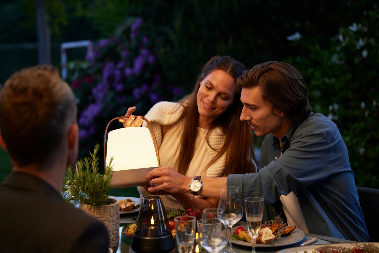 Le Kooduu Lite-up est 100% portable grâce à sa taille compacte, sa batterie intégrée et rechargeable et son manche en bois certifié FSC fait à la main, pour que vous puissiez créer l'ambiance où que vous soyez.