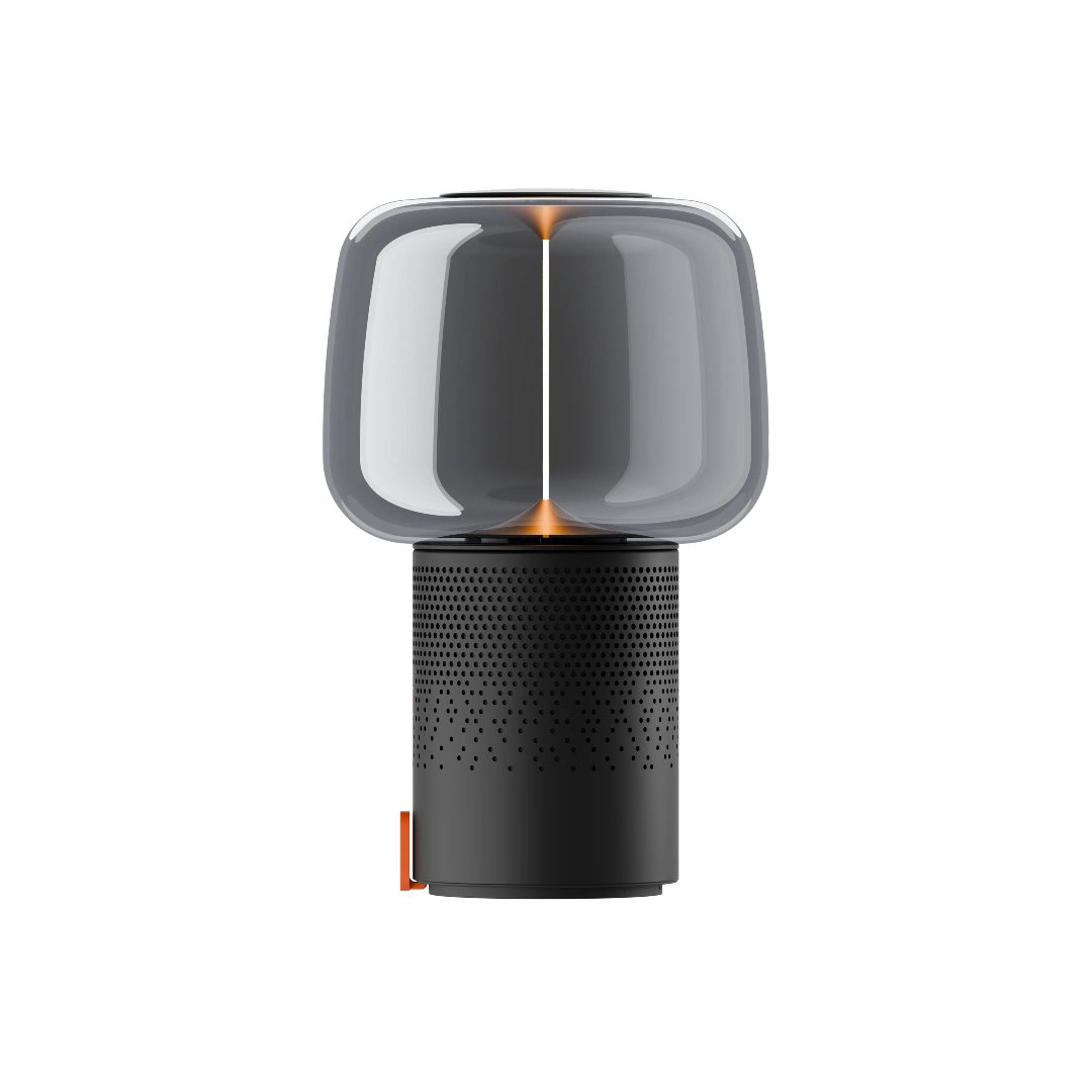 La Kooduu Serena PLAY en Anthracite Métallique se distingue par un corps en acier thermolaqué profond, surmonté d’un abat-jour en verre fumé fait main, créant une pièce forte au style contemporain. Le filament LED vertical traverse le centre du verre et diffuse une lumière douce et chaleureuse, contrastant élégamment avec la base sombre et architecturale.