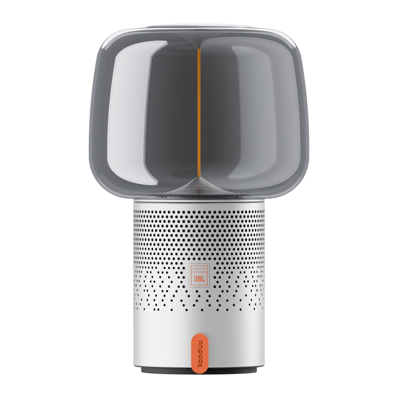 The Kooduu Serena PLAY Bluetooth speaker lamp, in the color Frosted Silver, combines powerful and rich Sound by JBL audio technology with a soft, warm light, diffused by a filament-style LED strip embedded in a sculptural glass top. This one-of-a-kind design blends high-quality Bluetooth sound with nostalgic lighting — a truly unique combination. Elegant, portable, and inviting, it offers a 360° experience of light and sound in perfect harmony, transforming any space into a magical moment filled with music and ambiance.