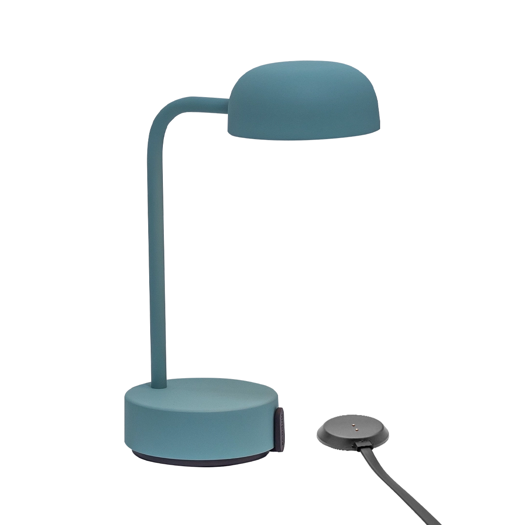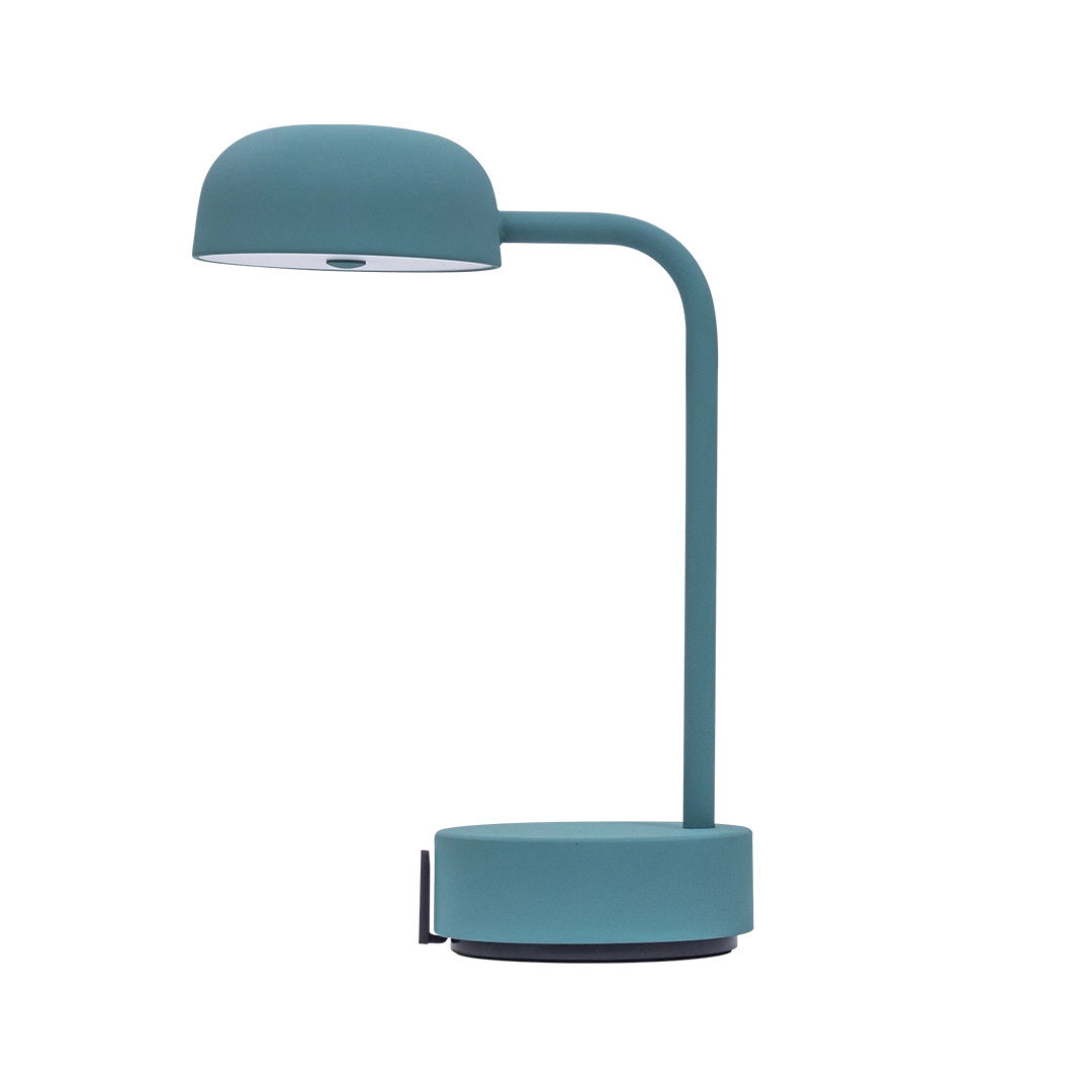 The Fokus Smoky Teal is a convenient, rechargeable desk lamp that can be dimmed continuously to suit any activity or mood.