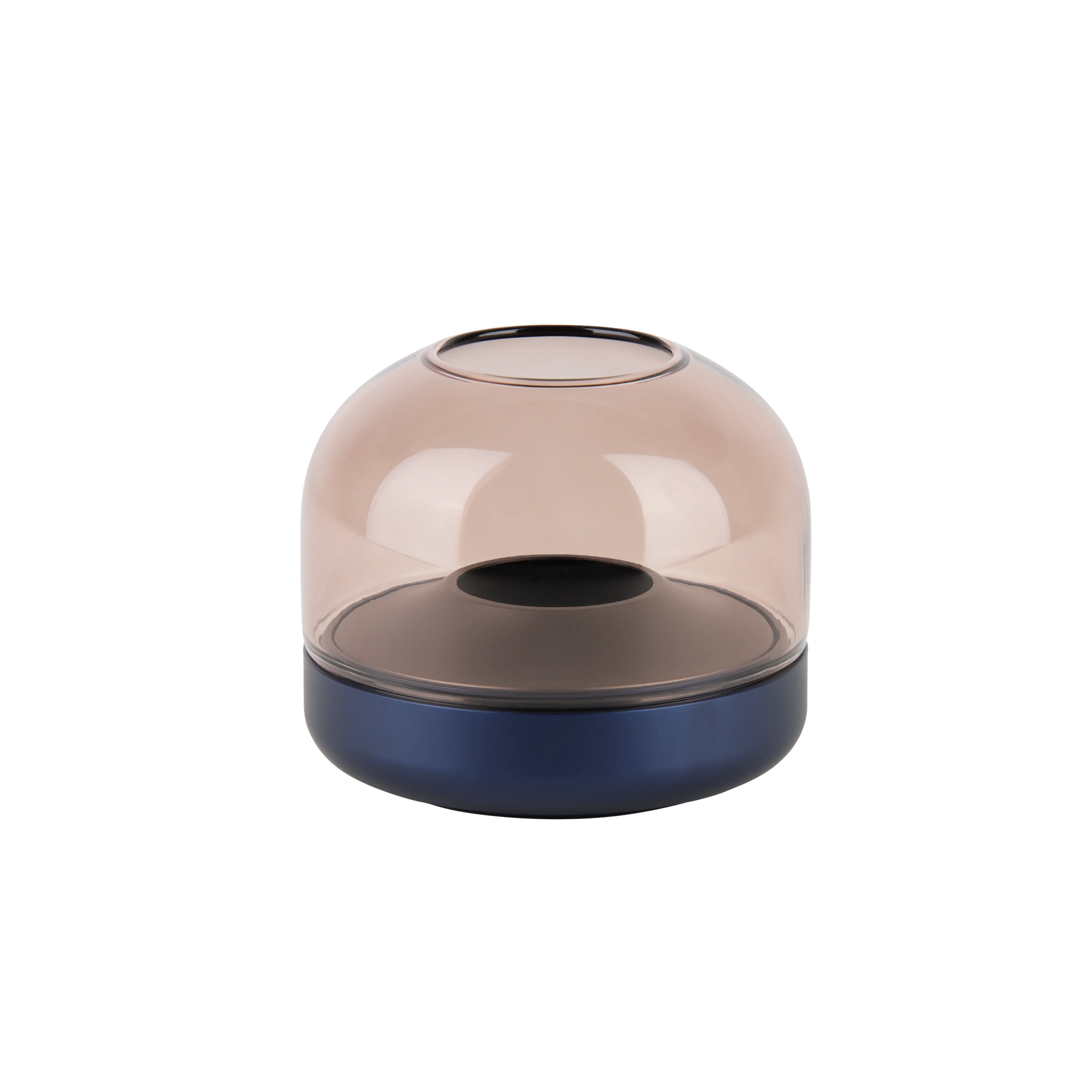 Enjoy luxurious candlelight without an open fire with the Glow 08 Smoked Cobalt Blue and the optional Shine LED candle, a safe and rechargeable alternative to traditional candles that gives you more than 100 hours of candlelight with just 3 hours of charge.