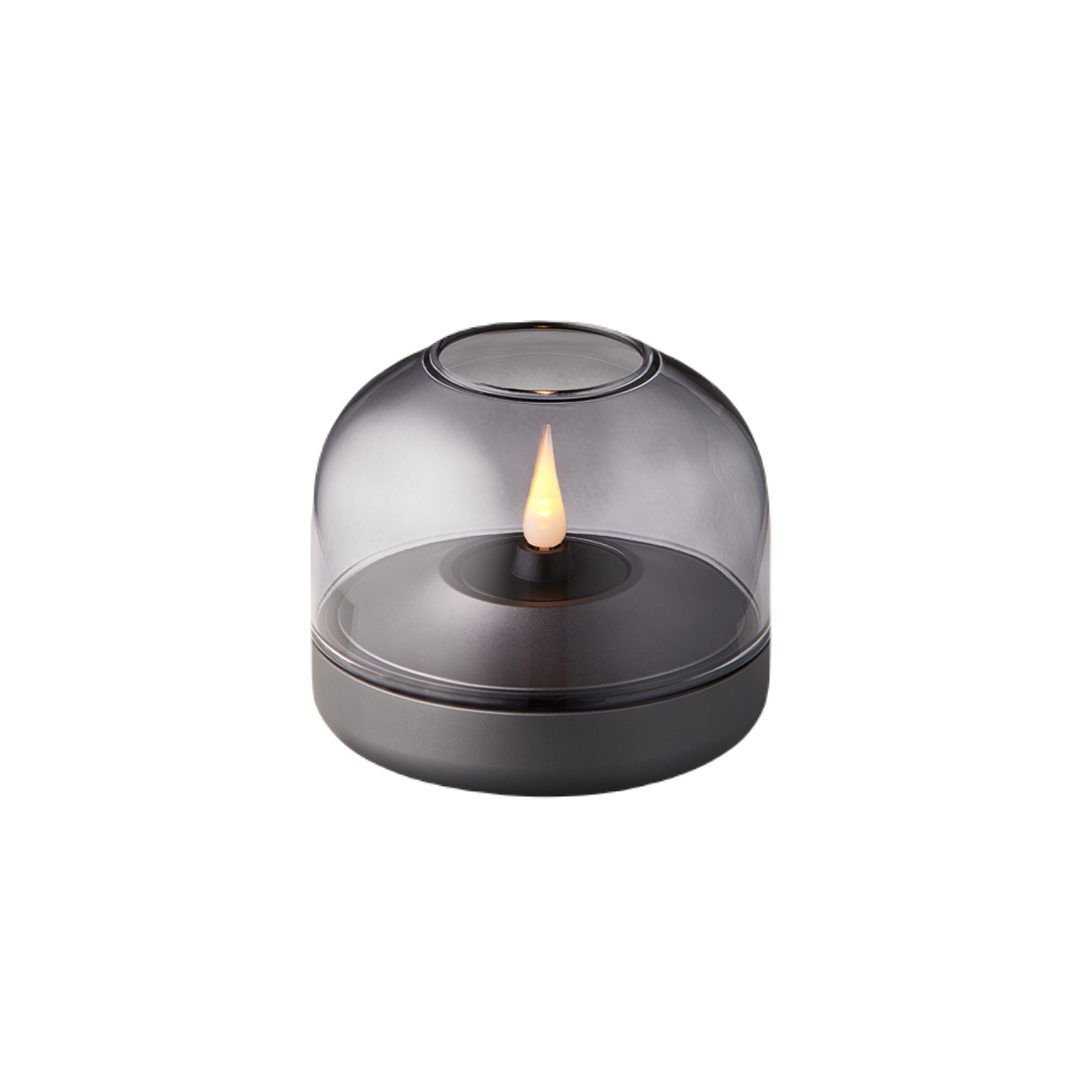 Enjoy luxurious candlelight without an open fire with the Glow 08 Smoked Grey and the optional Shine LED candle, a safe and rechargeable alternative to traditional candles that gives you more than 100 hours of candlelight with just 3 hours of charge.