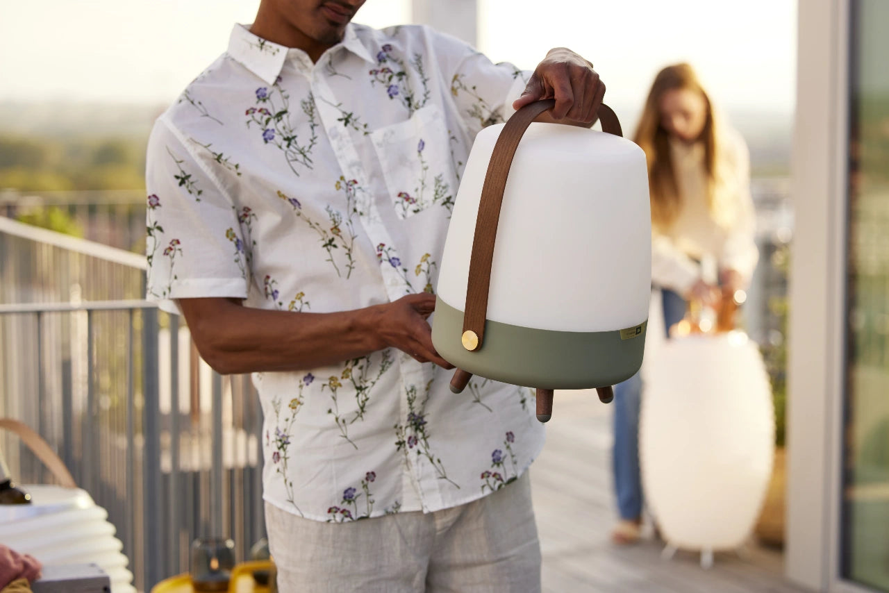 The Kooduu Lite-up Play - SOUND BY JBL is 100% portable thanks to its modest size, its built-in and rechargeable battery, and its handcrafted FSC-certified wooden handle, so you can set the mood wherever you are.
