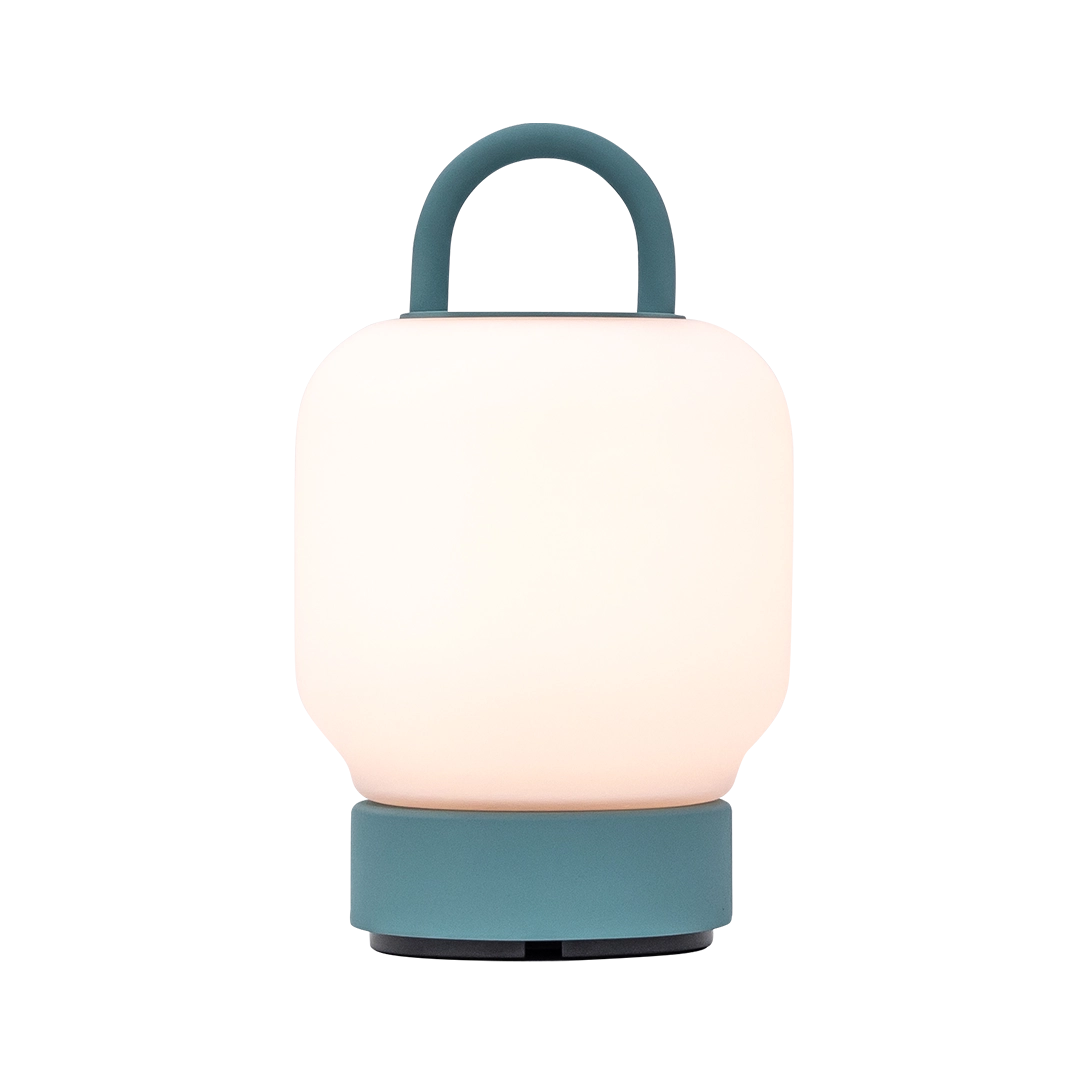 Designed to add elegance and illumination to your space, the Loome Smoky Teal is a highly portable lantern table lamp with diffused, continuously dimmable light.