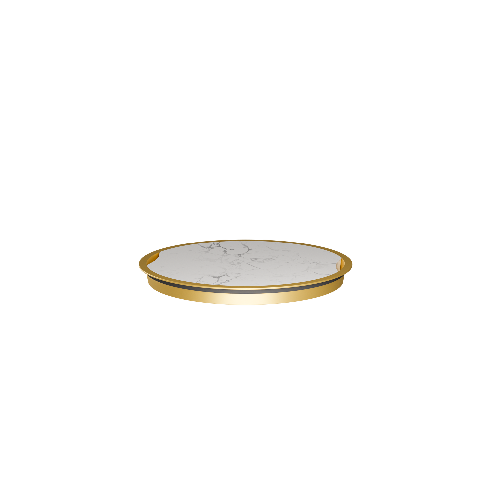 This Sphere Marble Top in Brass by Jacob Jensen Design is a stylish add-on for the Sphere speaker lamp. It transforms your Sphere into a small table and also doubles up as an elegant cutting board if you need one.