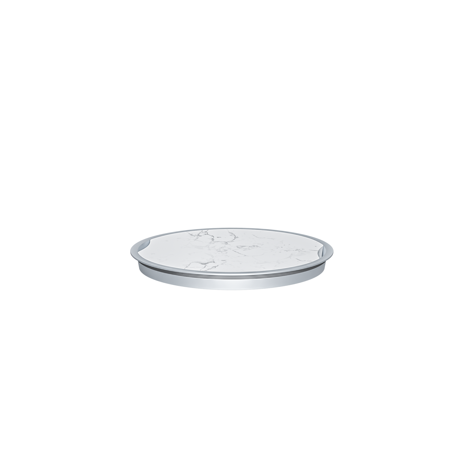 This Sphere Marble Top in Brushed Silver by Jacob Jensen Design is a stylish add-on for the Sphere speaker lamp. It transforms your Sphere into a small table and also doubles up as an elegant cutting board if you need one.